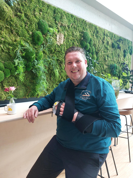 “Na het ziekenhuis ben ik zo’n 3 maanden bij revalidatiecentrum Klimmendaal in Apeldoorn geweest. Daar kreeg ik intensieve ondersteuning, fysiotherapie, ergotherapie en logopedie. Ik moest mezelf weer leren aankleden, eten, drinken en dergelijke. Gelukkig heb ik een fijne vriendin, inmiddels mijn vrouw, familie en een heel groot sociaal netwerk. Iedere dag kwamen er mensen op bezoek en dat heeft mij echt heel goed gedaan en de moed en kracht gegeven om door te gaan.”